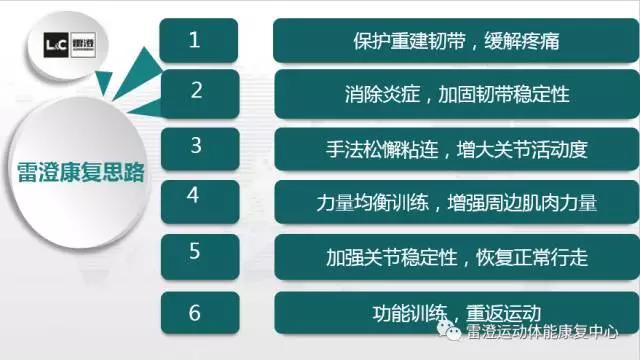 雷澄主打运动体能康复理念,专门针对颈肩腰疼痛、运动损伤、术后康复等问题给予科学的康复方案。经过汪先生的主诉以及对其手术过程的了解,我们为其制定了完整的运动损伤康复方案: